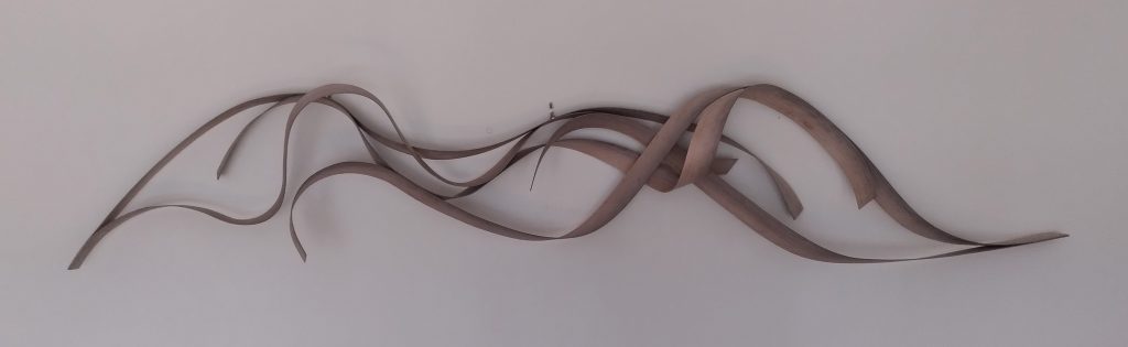 Clear cutting of the old growth forests that once surrounded Georgian Bay began in the 1700s. It’s estimated that many of the hardwood trees were more than 1000 years old. They were so dense that as many as half of them sunk to the bottom of Georgian Bay when loggers tried to tow them to sawmills in giant log booms. One of those ancient trees, hauled recently from the bottom of the Bay, was used to make this nine-foot-long wall mounted sculpture.