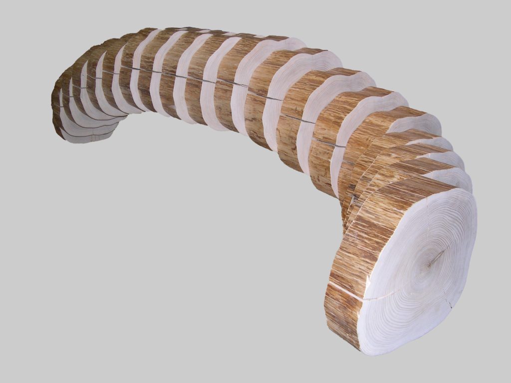 A straight, solid, 10-foot-long cedar log was sliced into pieces and put back together in a not-so-straight arrangement. It’s a sculpture, created mostly by nature and modified slightly by human hands. And it functions as a one-of-a-kind bench if you like.